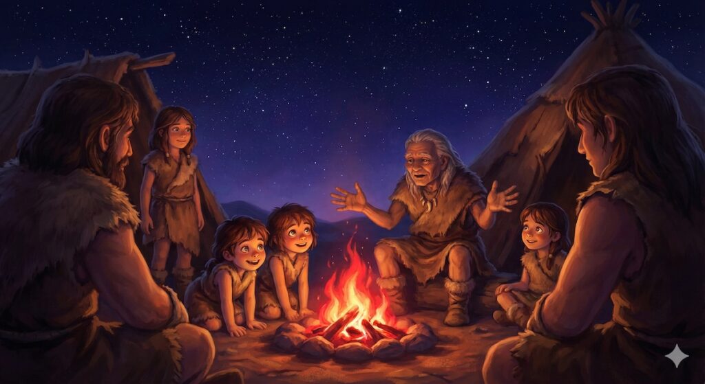 人々は、耳で聞いて、頭の中で想像して、それを一生懸命に覚えて、また次の世代へとお話をして聞かせました。