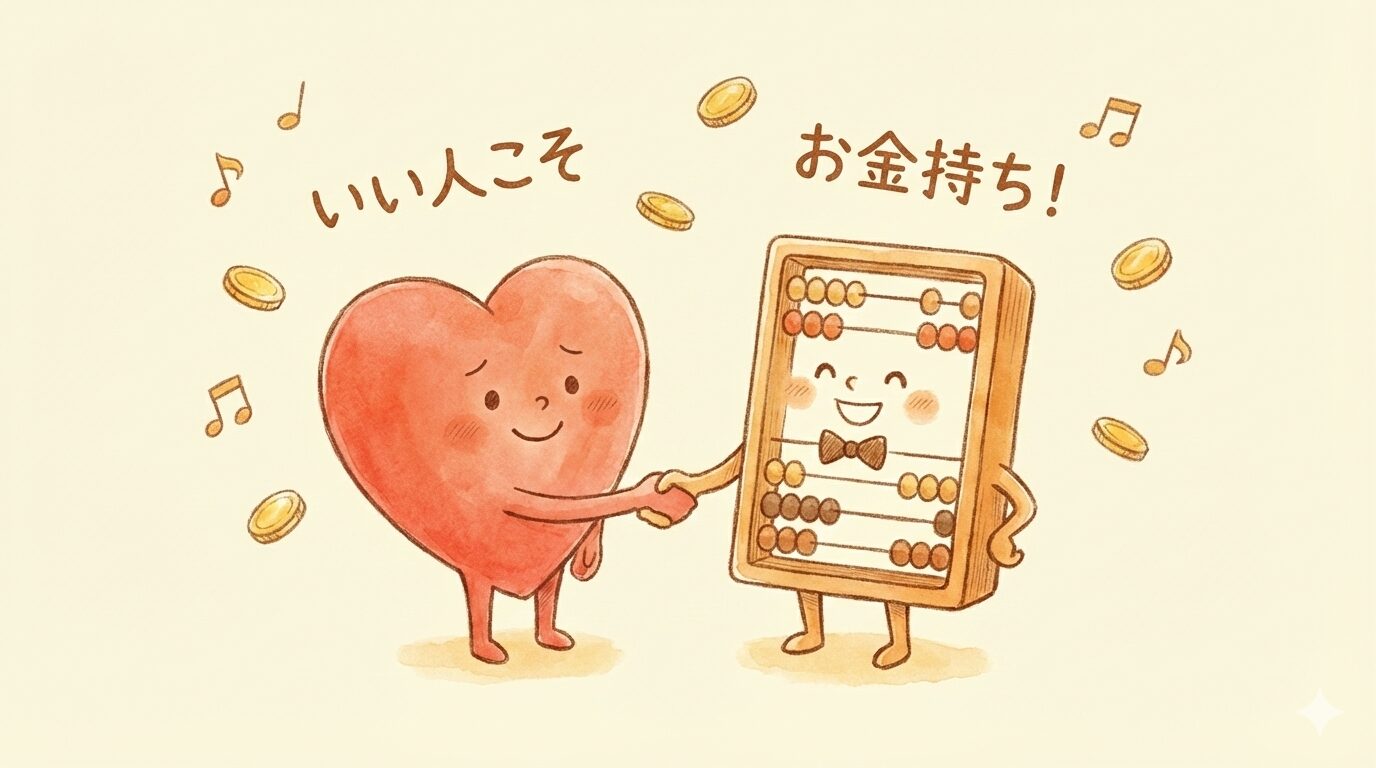 もし、勇者が「伝説の剣(すごい才能)」を持っていても、心が悪ければ、村の人をいじめる魔王になってしまいますよね? 逆に、心がとても優しくても、武器も防具も何も持っていなければ(商才がない)、モンスターに負けてしまって誰も守れません。