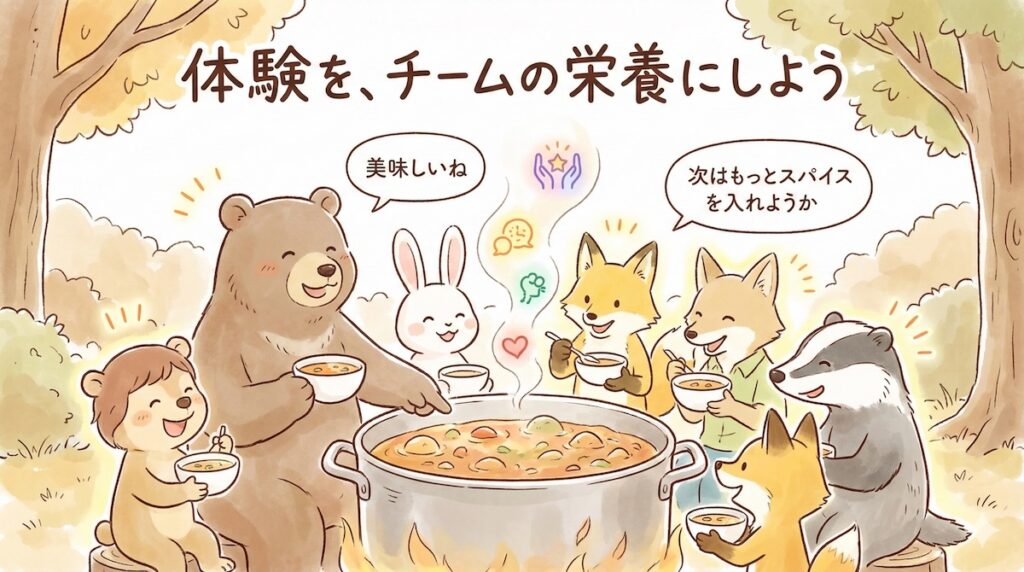これを話し合うことで、失敗も成功も、チーム全員の「宝物(資産)」になります。 「やりっぱなし」にせず、ちゃんと味わって栄養にするイメージですね。