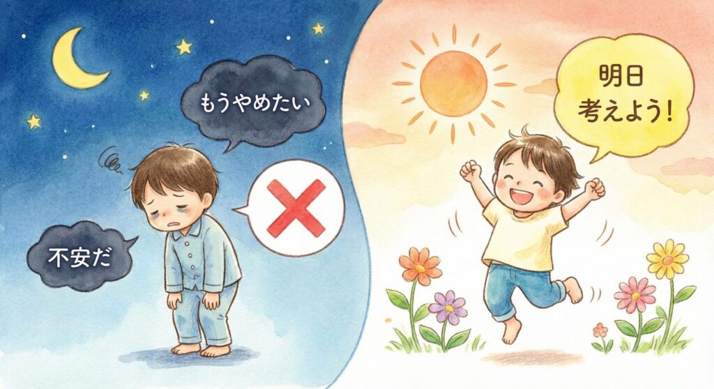 「夜に考えると、なんだか急に不安になって、大きな決断をしてしまう」という経験はありませんか?
