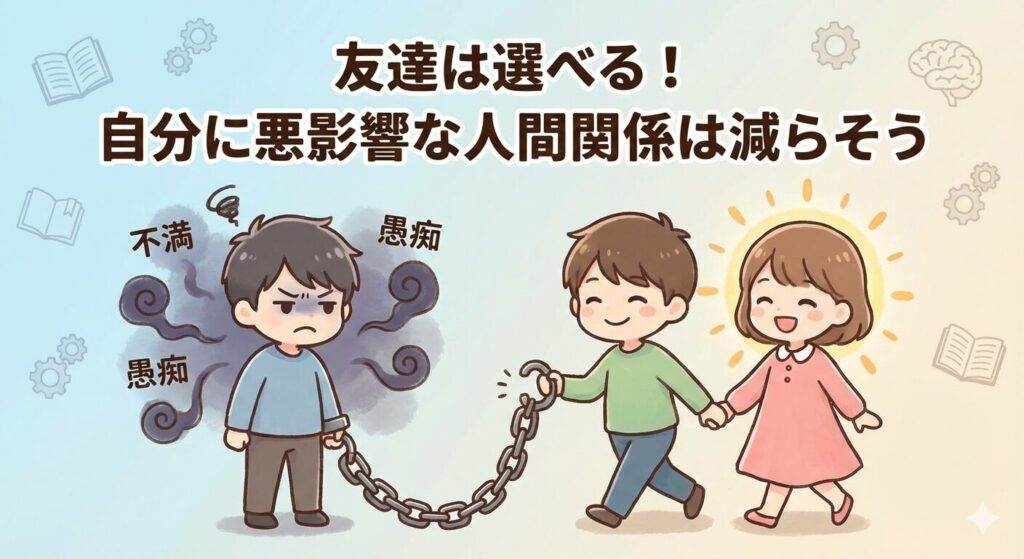 さらに、人間関係に悩む時間を減らすために、一つだけ意識してほしいことがあるよ。それは、「自分に悪影響を与える人間関係を減らすこと」なんだ。