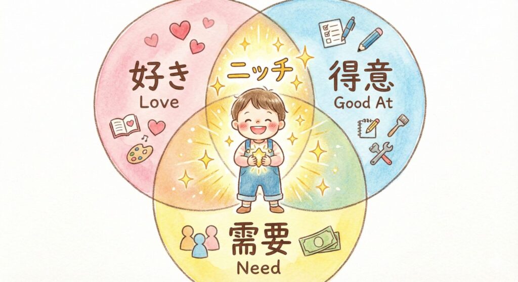この3つが重なる分野で勝負すると、少ない努力でも成果が出やすくなります。